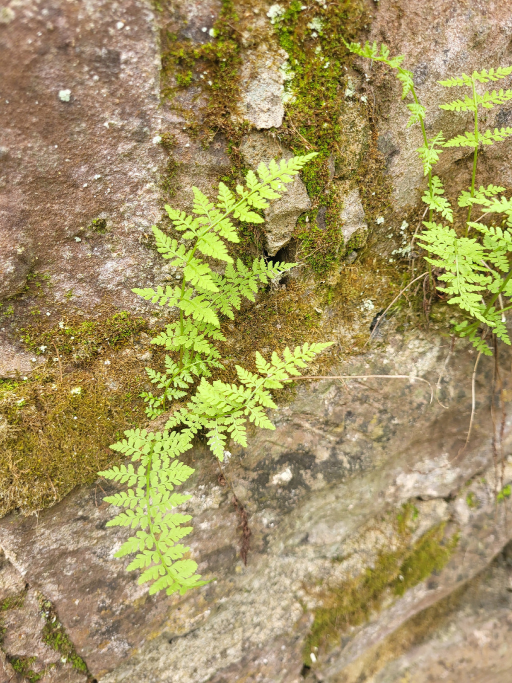 Cystopteris fragilis s. str. Zerbrechlicher Blasenfarn - 6613/231: Elmstein, Pfad Möllbachweiher, 22.04.2026